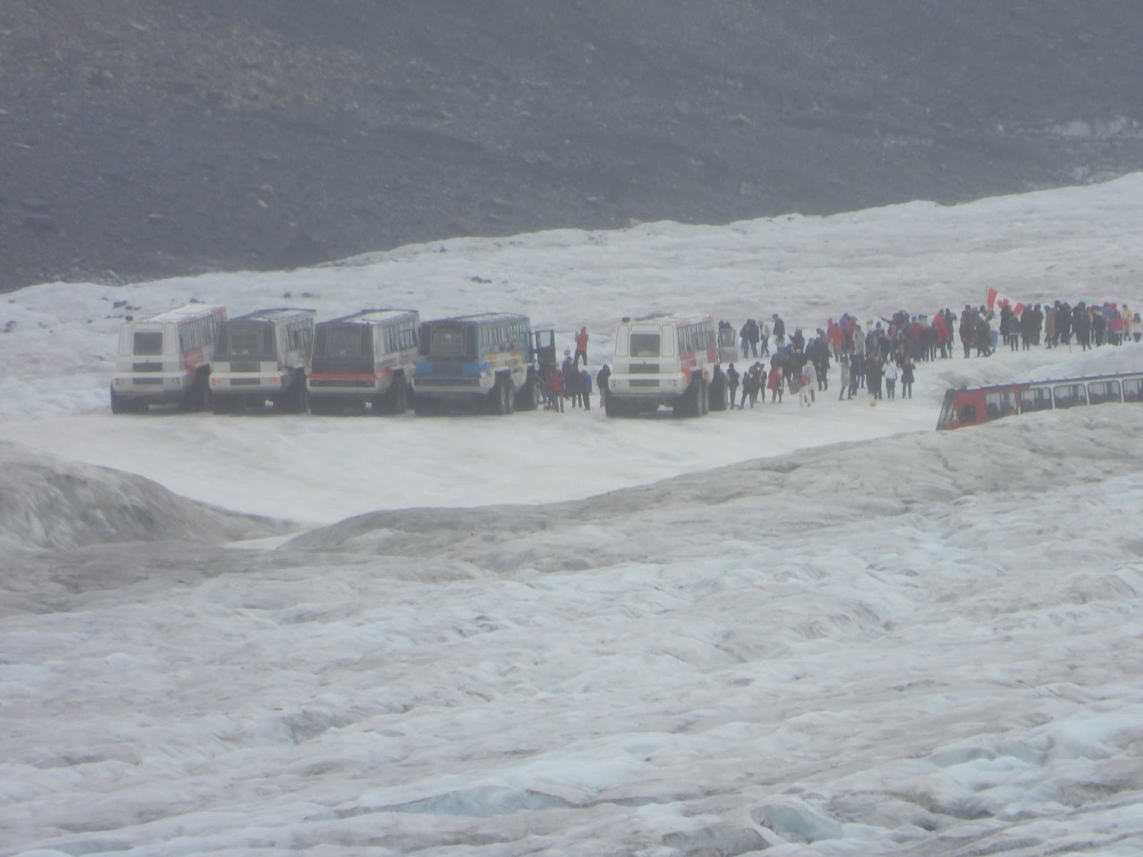 Tjah de bussen op de gletsjer is een attractie voor de toeristen... Niet te begrijpen maja...